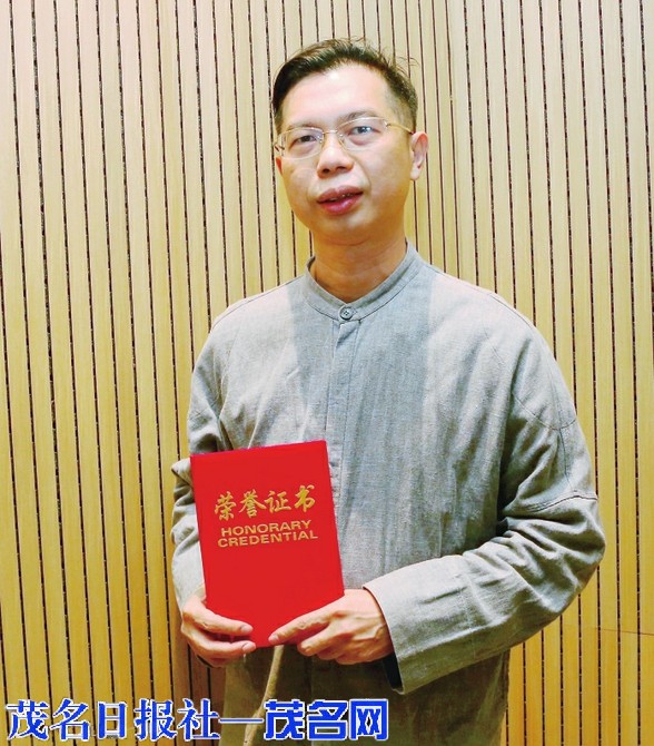 何明霖手持荣誉证书。茂名日报社全媒体记者李颜东摄