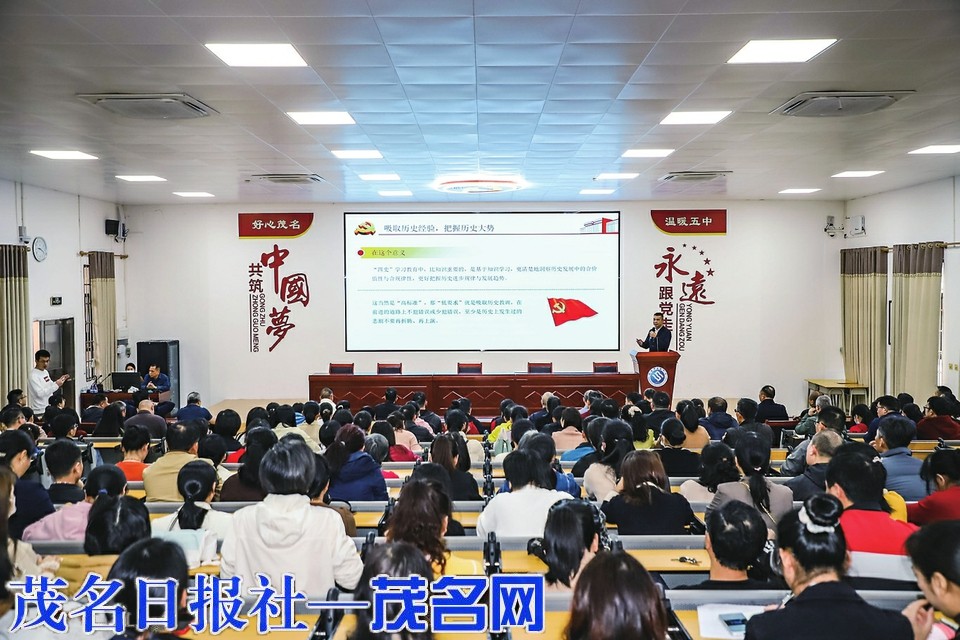 茂名晚报讯记者黄宇彬3月14日,由茂南区教育局主办的以“不忘初心、牢记使命——中国共产党的昨天、今天与明天”为主题的“四史”宣传教育在茂名市第五中学开展,持续抓好党史、新中国史、改革开放史、社会主义发展史宣传教育,进一步强化教师“四史”学习教育,坚定教师理想信念,厚植爱党爱国情怀,增强以德育德能力。