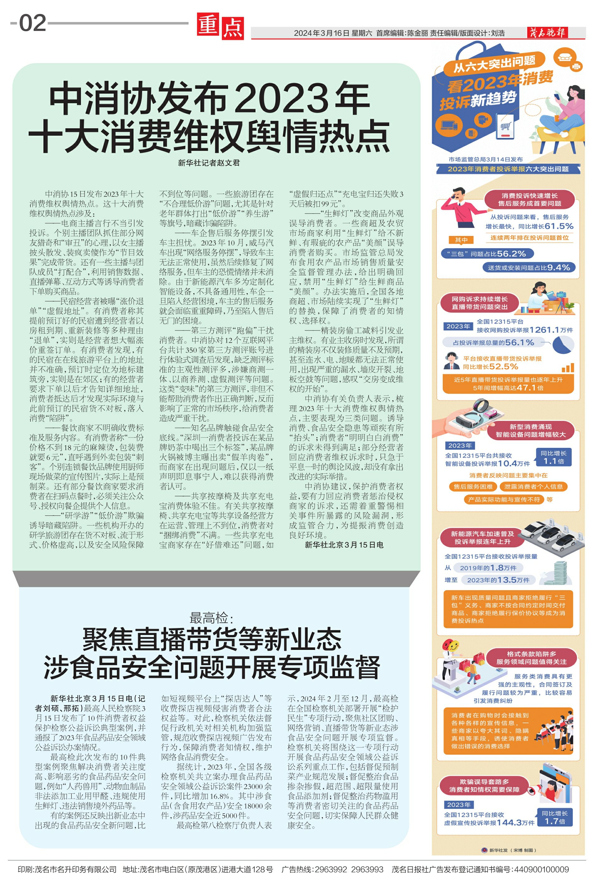 中消协发布2023年十大消费维权舆情热点