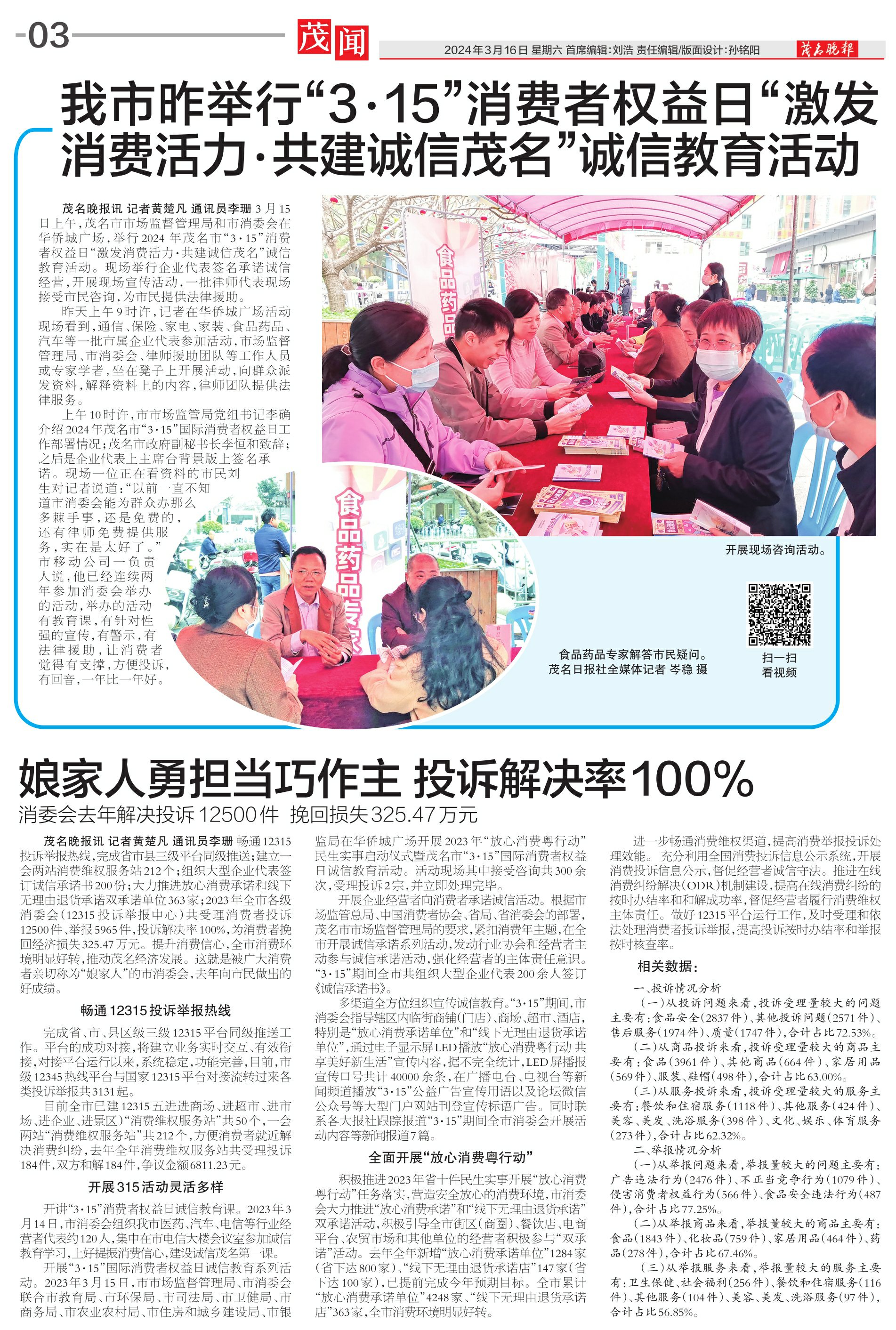 我市昨举行“3·15”消费者权益日“激发消费活力·共建诚信茂名”诚信教育活动