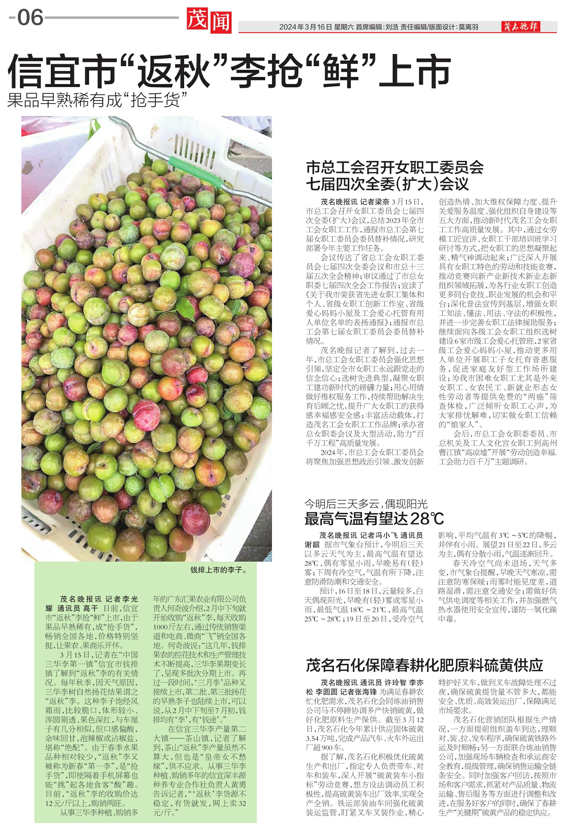 信宜市“返秋”李抢“鲜”上市