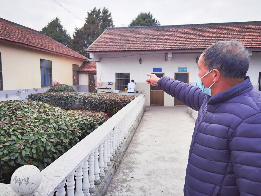 启东市慈光颐养院护工苏维冲指着第一排“教室”说:“六十多年前我小学毕业,就在那个教室。” 新华每日电讯记者朱旭东摄