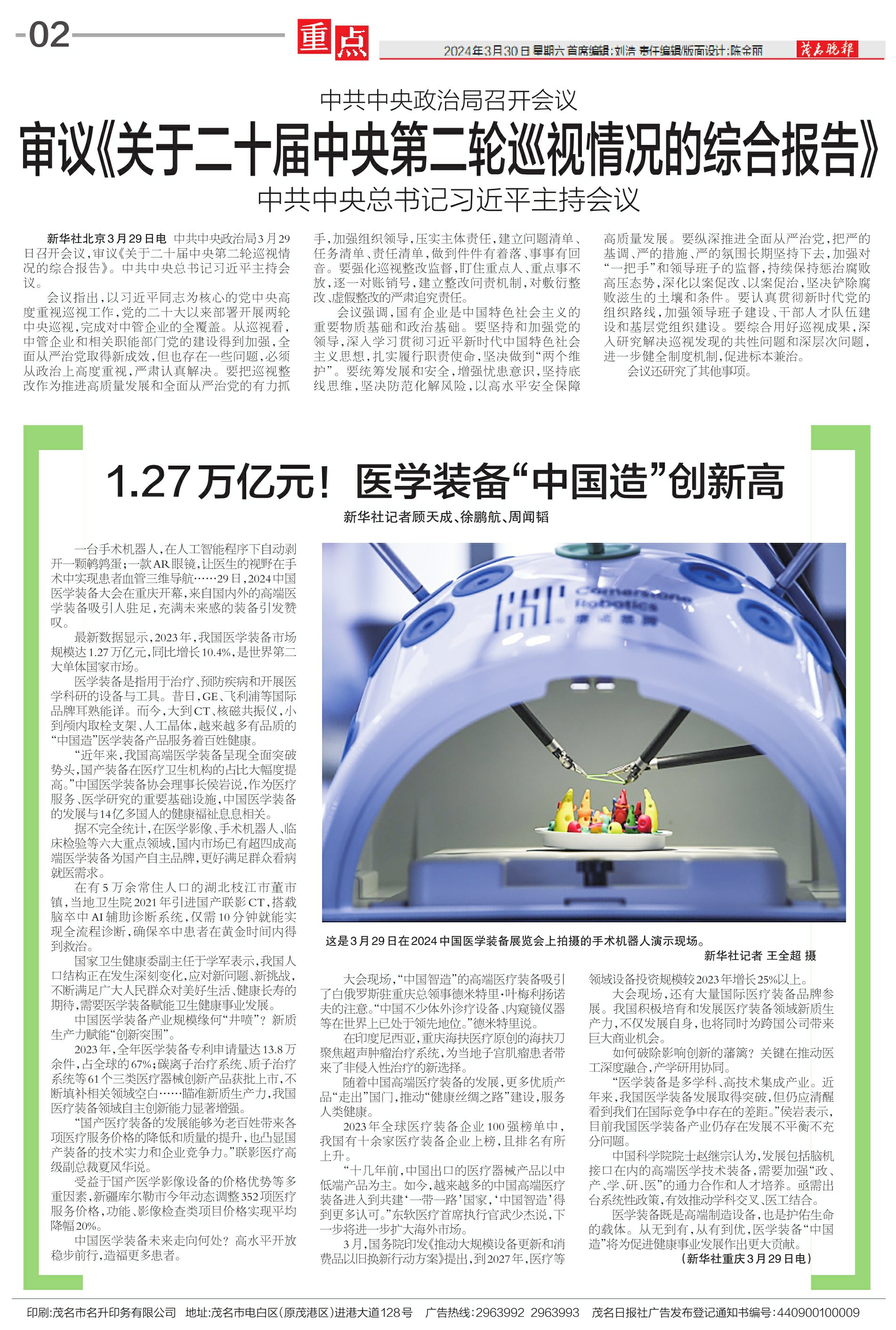审议《关于二十届中央第二轮巡视情况的综合报告》