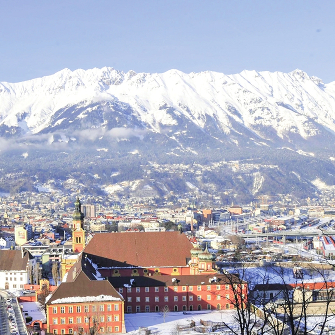 这是2012年1月11日拍摄的雪山下的奥地利西部城市因斯布鲁克。新华社记者武巍摄