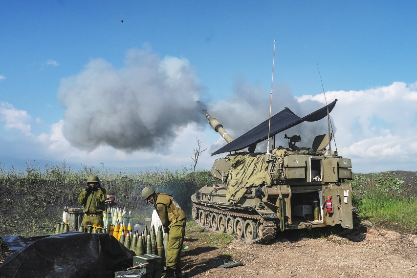 1月4日,在以色列北部边境,以军的一门自行榴弹炮向黎巴嫩南部开火。新华社发(阿亚尔·马戈林摄/基尼图片社)