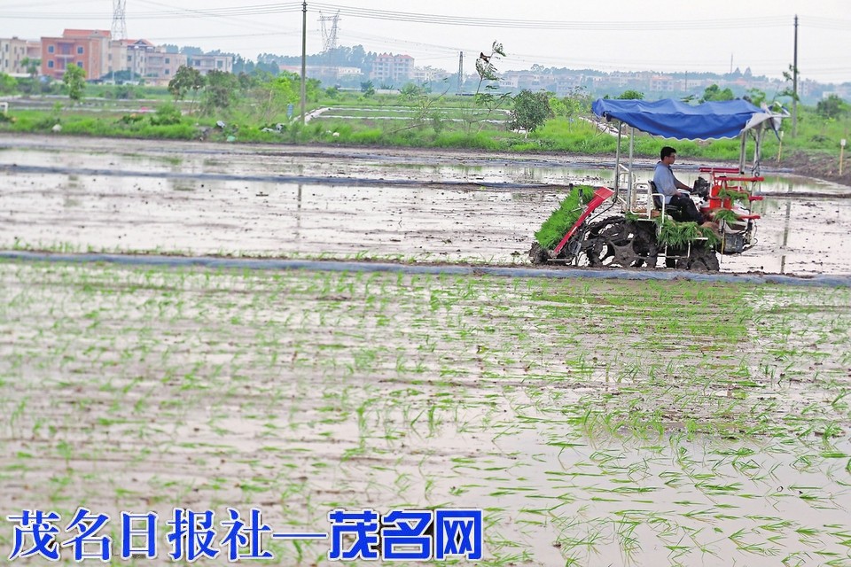 茂名晚报讯 记者陈琴 通讯员黄林明 邱秋梅 4月6日,在茂南区金塘镇牙象村的一片农田里,插秧机来回穿梭,农技人员也在现场进行技术指导,伴随着插秧机的隆隆声,一株株秧苗整齐划一地种进了田里。