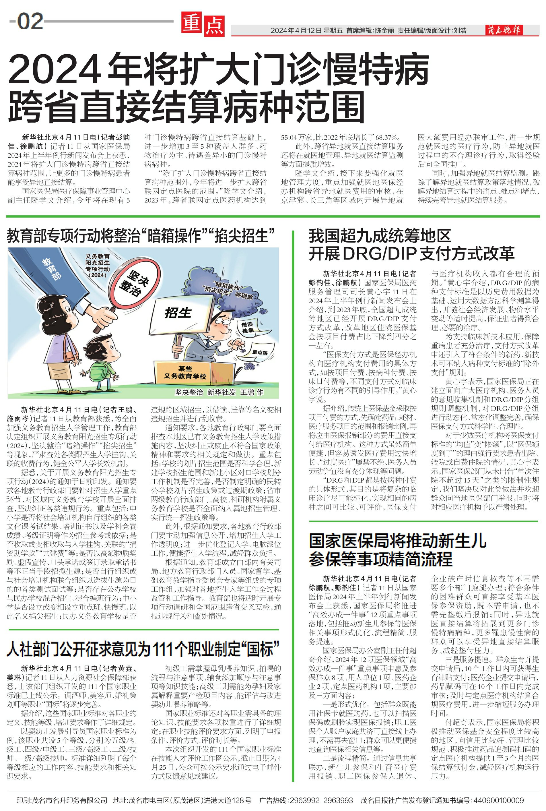 2024年将扩大门诊慢特病跨省直接结算病种范围