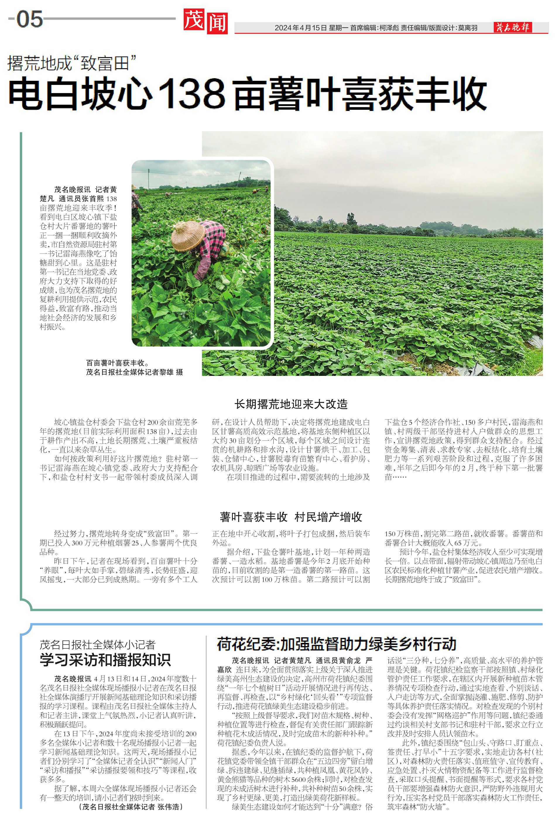电白坡心138亩薯叶喜获丰收