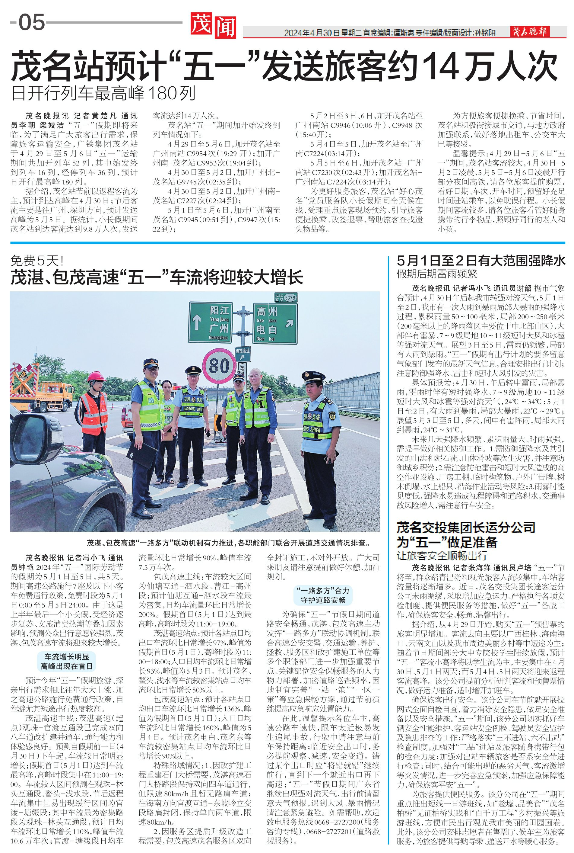 茂湛、包茂高速“五一”车流将迎较大增长