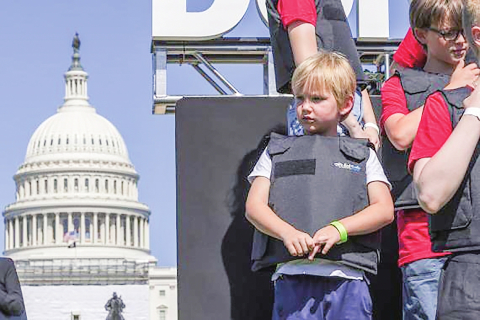 2022年6月6日,学生们身穿防弹衣在美国华盛顿的国会大厦前参加名为“不要回避”的抗议活动,呼吁立法机构正视美国枪击案频发的社会问题,要求加强枪支管控立法。新华社发(亚伦摄)