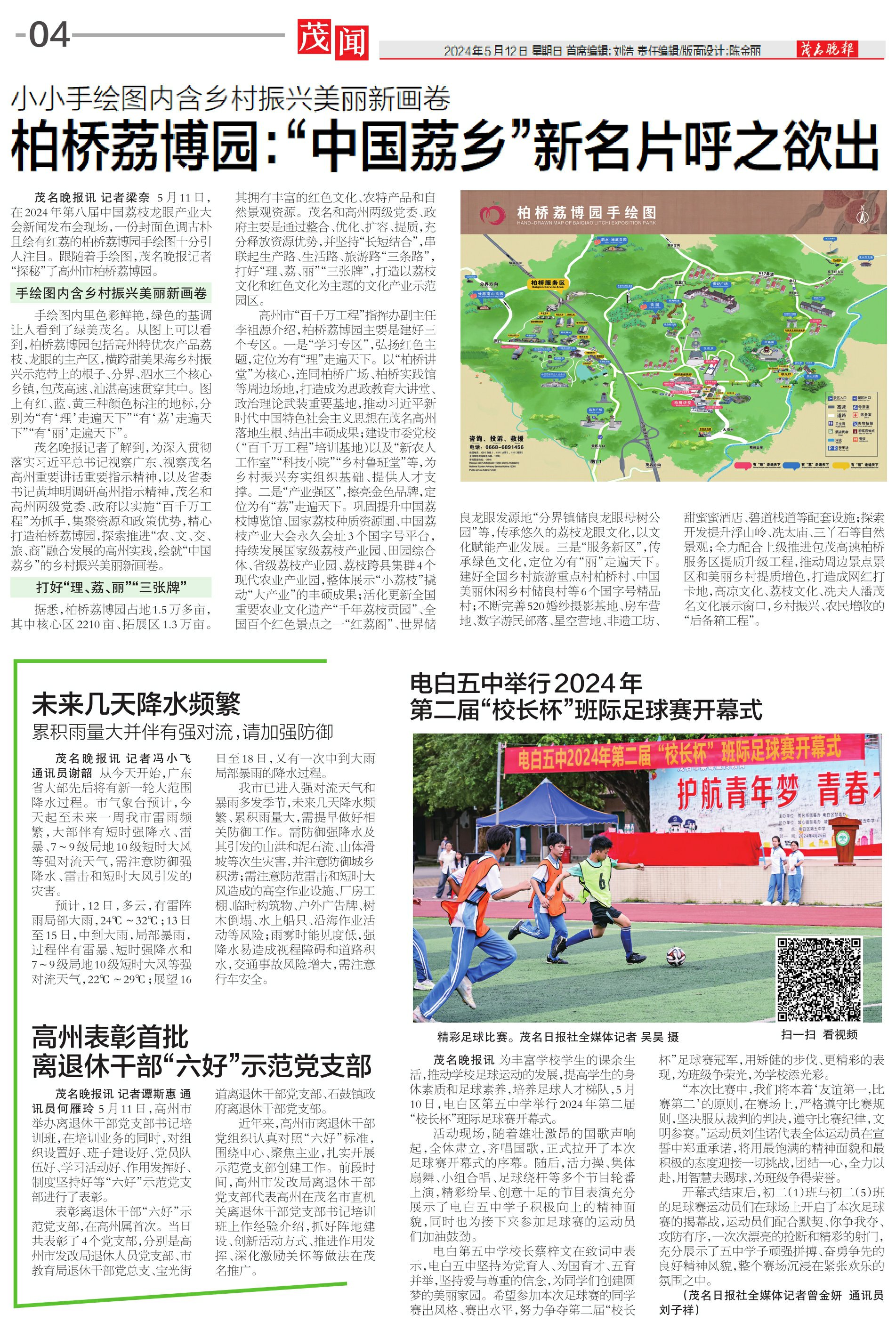 茂名晚报讯记者梁奈 5月11日,在2024年第八届中国荔枝龙眼产业大会新闻发布会现场,一份封面色调古朴且绘有红荔的柏桥荔博园手绘图十分引人注目。跟随着手绘图,茂名晚报记者“探秘”了高州市柏桥荔博园。