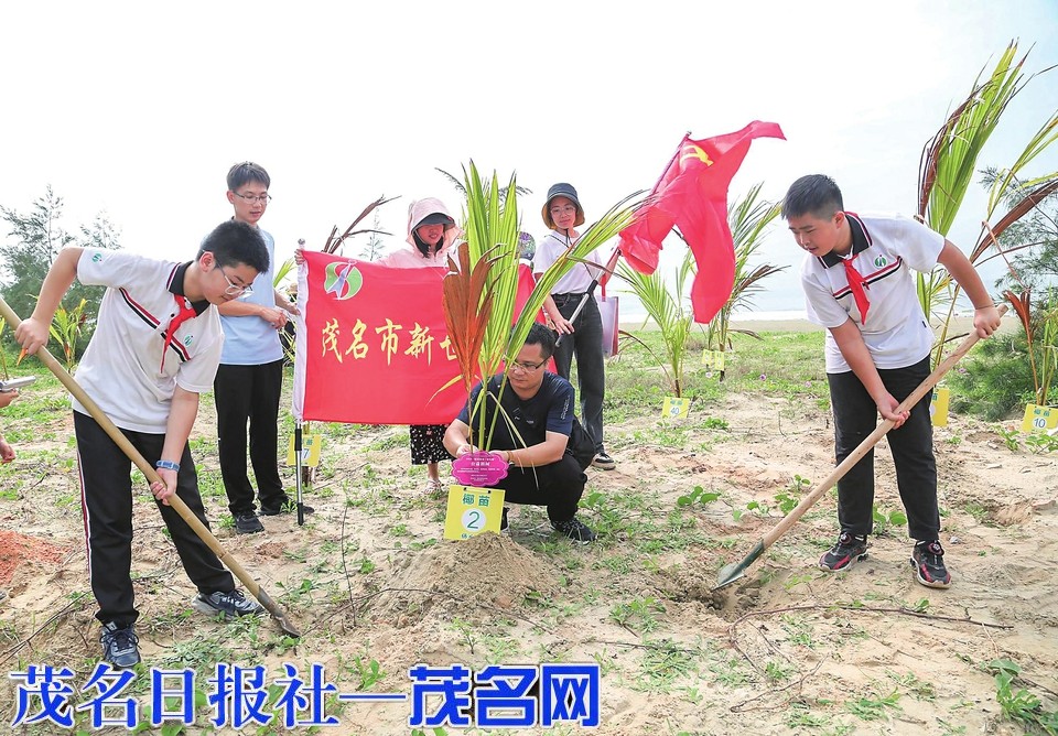 市新世纪学校师生植树添绿。茂名日报社全媒体记者李颜东摄