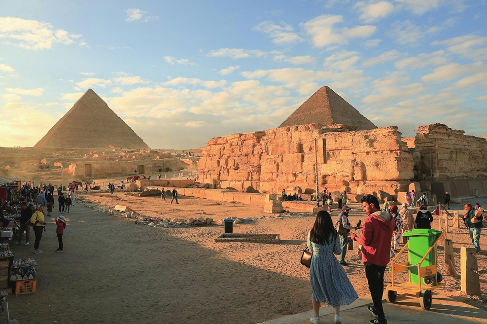 1月24日,游客在埃及吉萨金字塔景区游览。新华社记者隋先凯摄