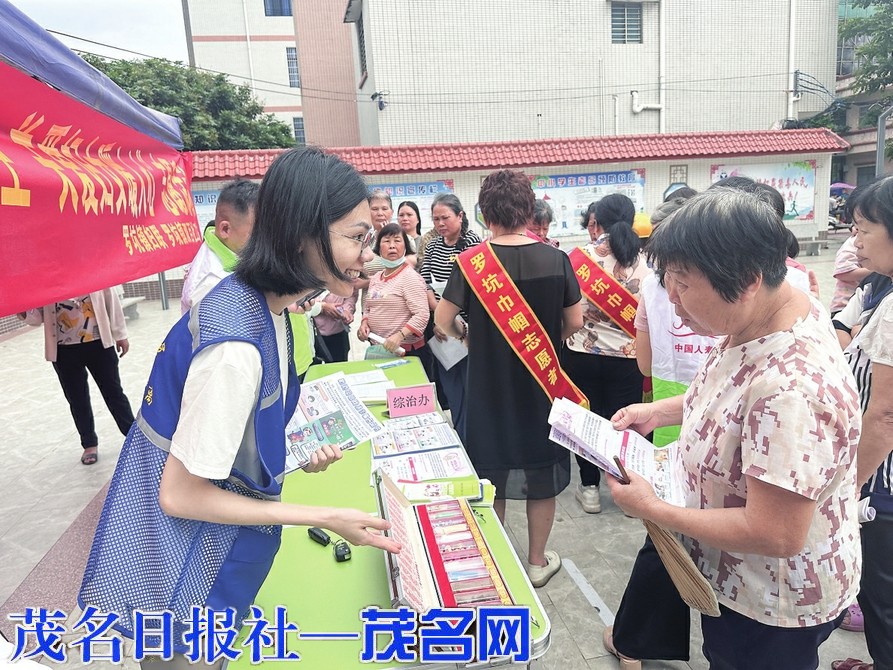 茂名晚报讯记者李光耀 为进一步提高辖区居民识毒、防毒、拒毒意识,普及禁毒知识、传播禁毒思想、宣传禁毒政策,近日,电白区罗坑镇禁毒办联合妇联、综合治理办公室、双百社工、人寿保险开展以“禁毒宣传进社区 全民共筑防毒墙”为主题的禁毒宣讲活动。