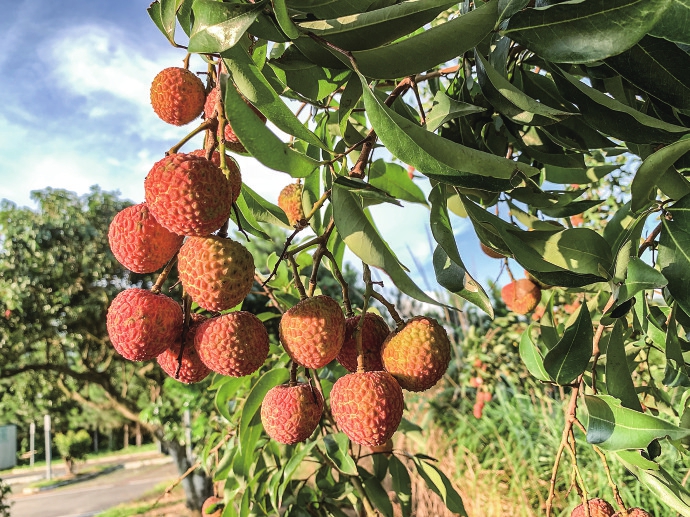 龙眼则含蓄,藏着圆润的秘密,皮薄肉厚,含羞带怯,藏于绿叶的怀抱里。剥开那黄色的外衣,露出白皙的肌理,一口下去,是故乡的味道,温柔又细腻。