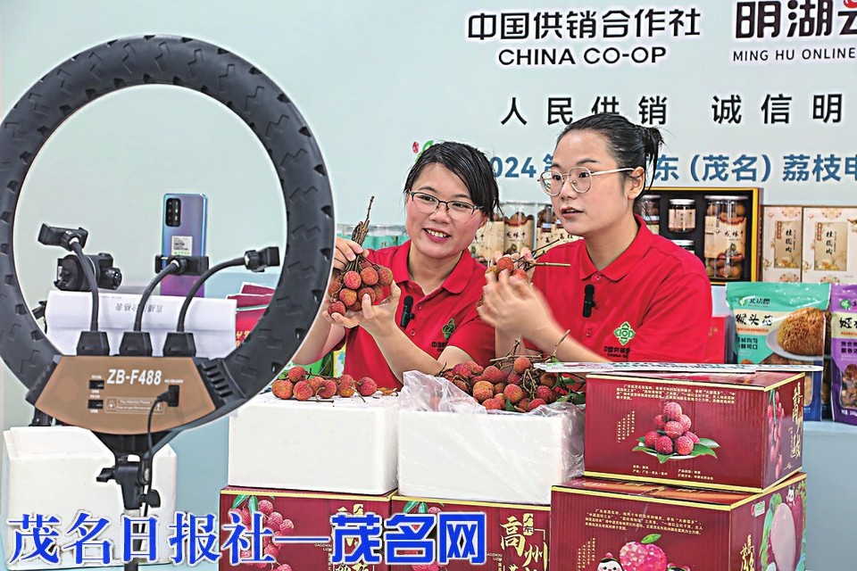 国内各大电商现场推荐销售茂名荔枝。 岑稳摄