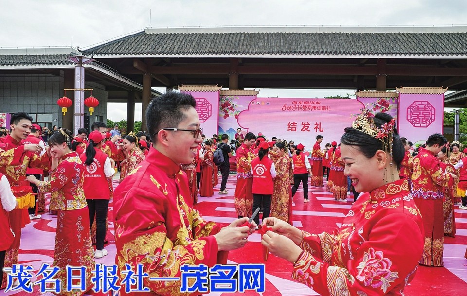 茂名晚报讯记者宁钰燕 当小满遇上“520”,恰如爱逢其时。5月20日,在这个充满爱意的日子里,由市民政局、市农业农村局、市总工会、团市委和市妇联联合主办的茂名市“520·我爱荔”集体婚礼在千年荔乡——高州市根子镇甜蜜举行。活动现场以荔为媒,百里红毯,主办方为58对新人打造了一场仪式感满满、甜蜜幸福、意义非凡的中式婚礼,与众多来宾一起见证了他们喜结连理。