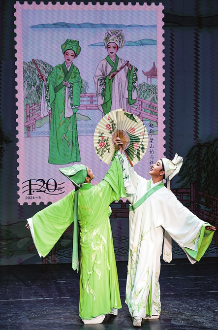 这套邮票的画面分别取材自《梁山伯与祝英台》《九斤姑娘》和《陆游与唐琬》等三部作品。它们都是浙江小百花越剧院历经几代艺术家传承创新、精益求精的经典保留剧目。