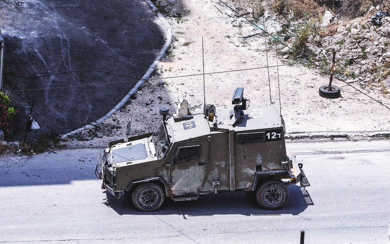 这是5月22日在约旦河西岸城市杰宁拍摄的以色列军车。新华社发(艾曼·诺巴尼摄)