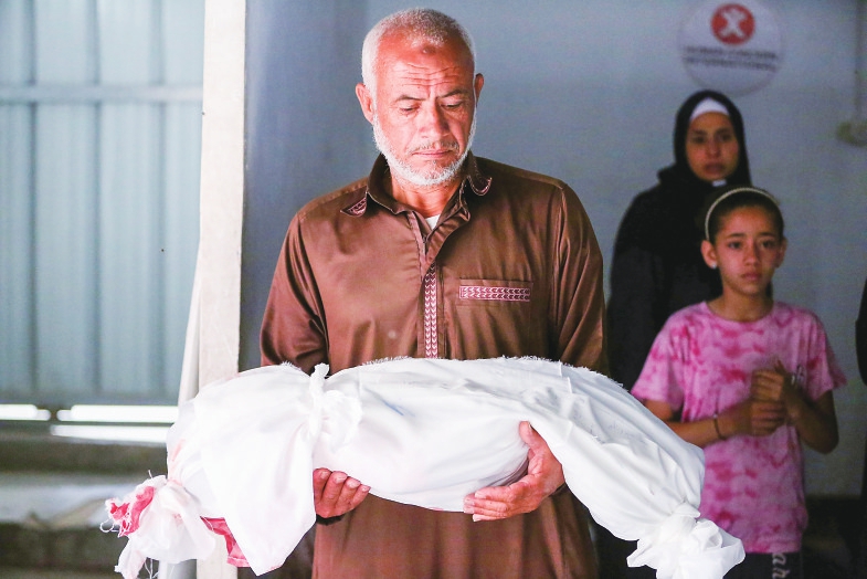 5月26日,在加沙地带南部城市拉法的一家医院,巴勒斯坦人哀悼死者。新华社发(哈立德·奥马尔摄)