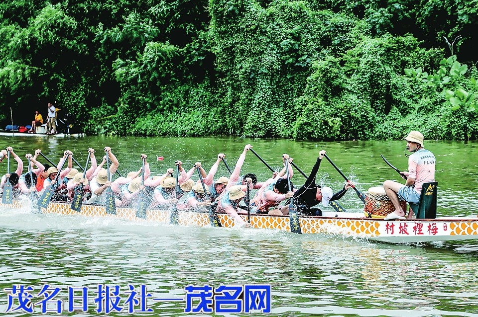 梅里坡村龙舟队奋力拼搏,力争上游。茂名日报社全媒体记者李颜东摄
