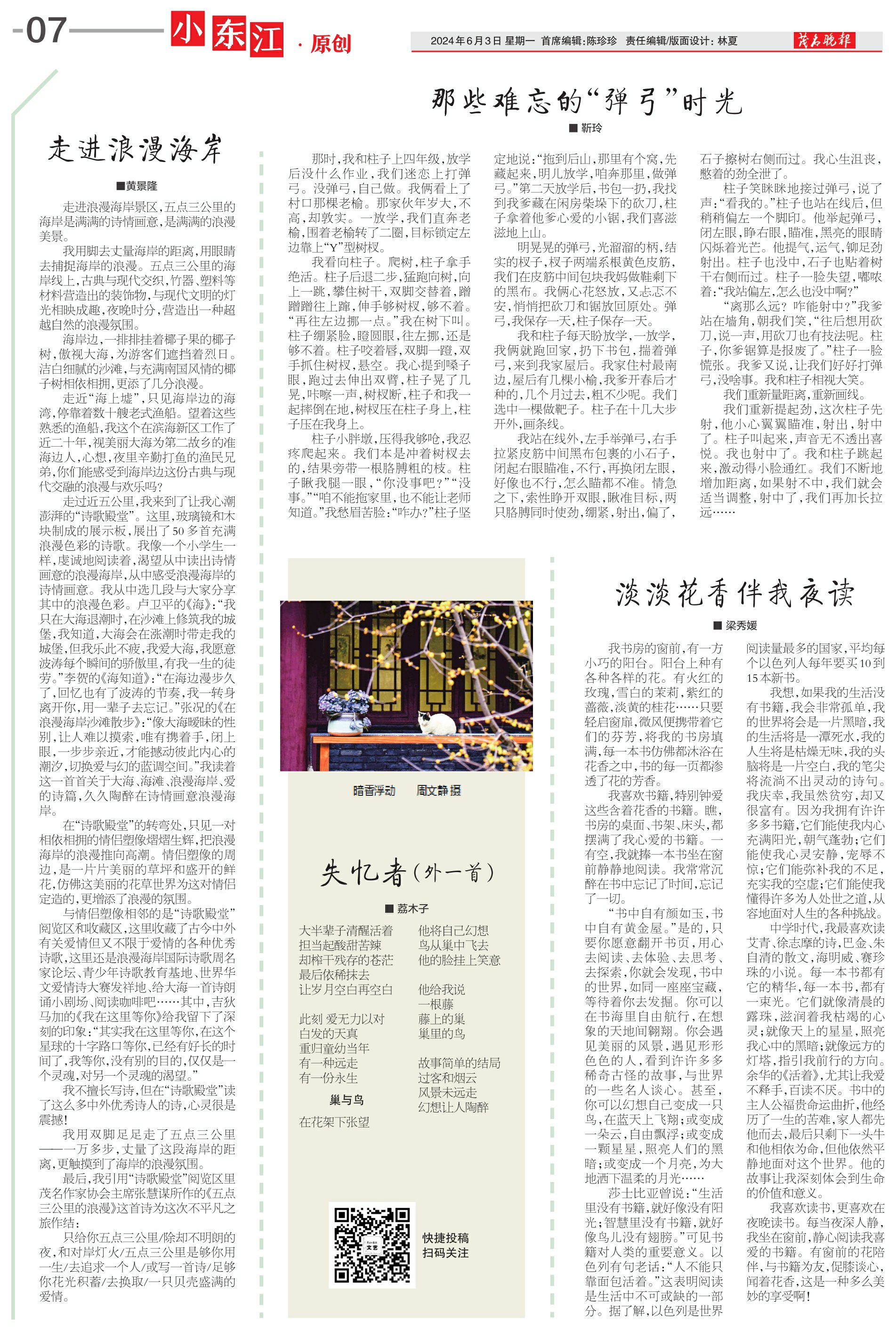 中学时代,我最喜欢读艾青、徐志摩的诗,巴金、朱自清的散文,海明威、赛珍珠的小说。每一本书都有它的精华,每一本书,都有一束光。它们就像清晨的露珠,滋润着我枯竭的心灵;就像天上的星星,照亮我心中的黑暗;就像远方的灯塔,指引我前行的方向。余华的《活着》,尤其让我爱不释手,百读不厌。书中的主人公福贵命运曲折,他经历了一生的苦难,家人都先他而去,最后只剩下一头牛和他相依为命,但他依然平静地面对这个世界。他的故事让我深刻体会到生命的价值和意义。