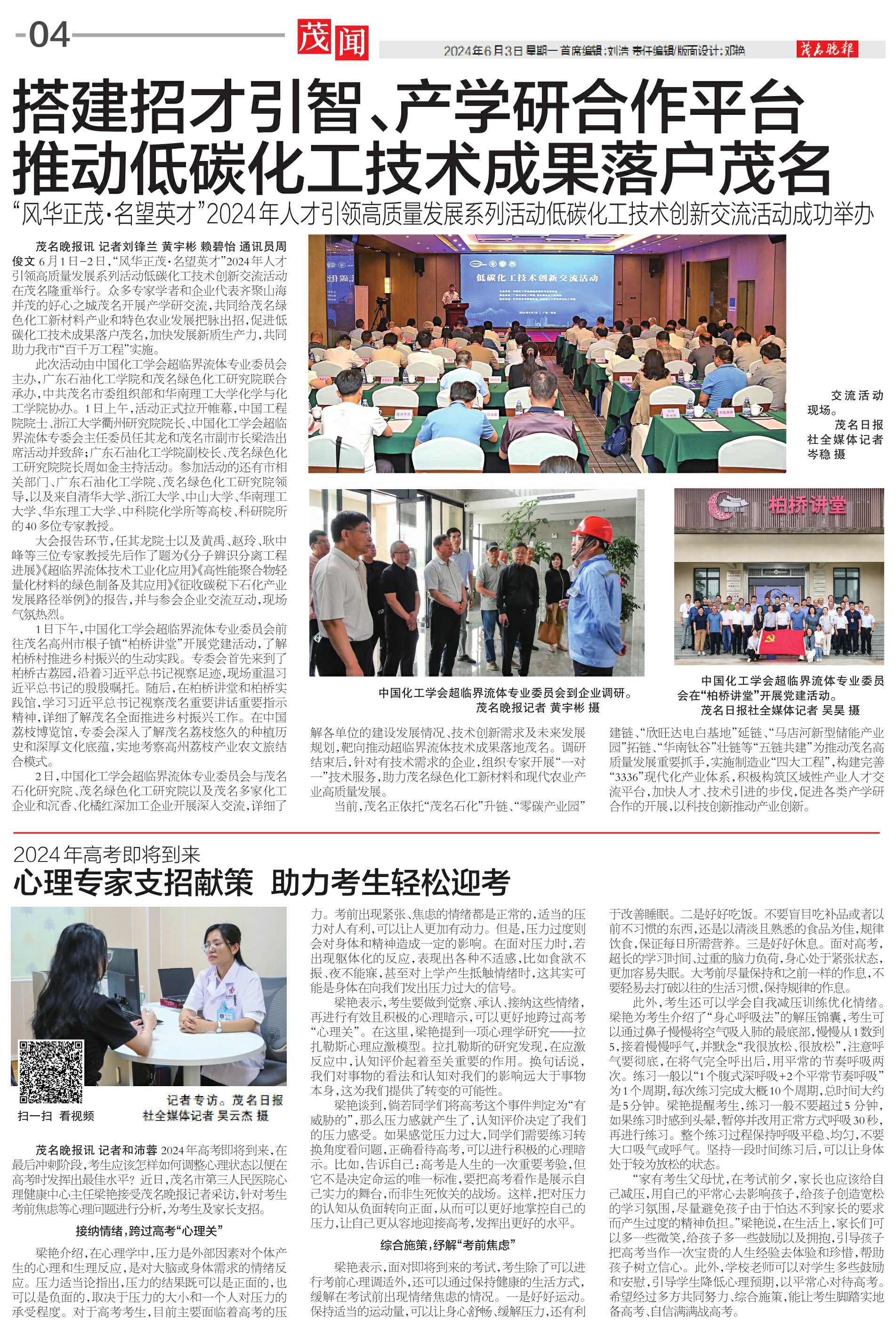 搭建招才引智、产学研合作平台 推动低碳化工技术成果落户茂名
