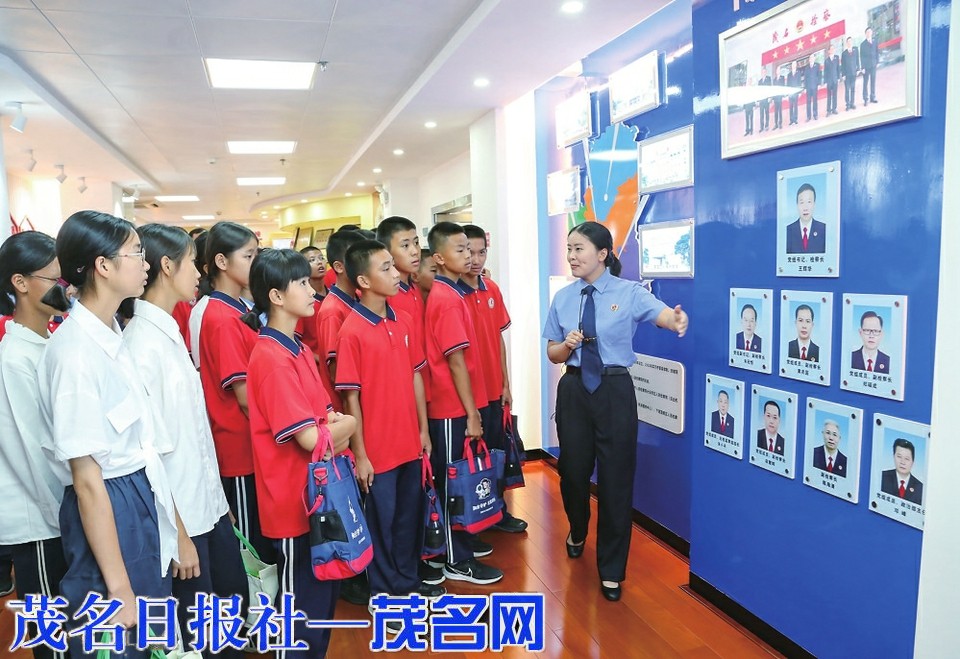 讲解员向学生介绍茂名检察院院史。 茂名日报社全媒体记者李颜东摄