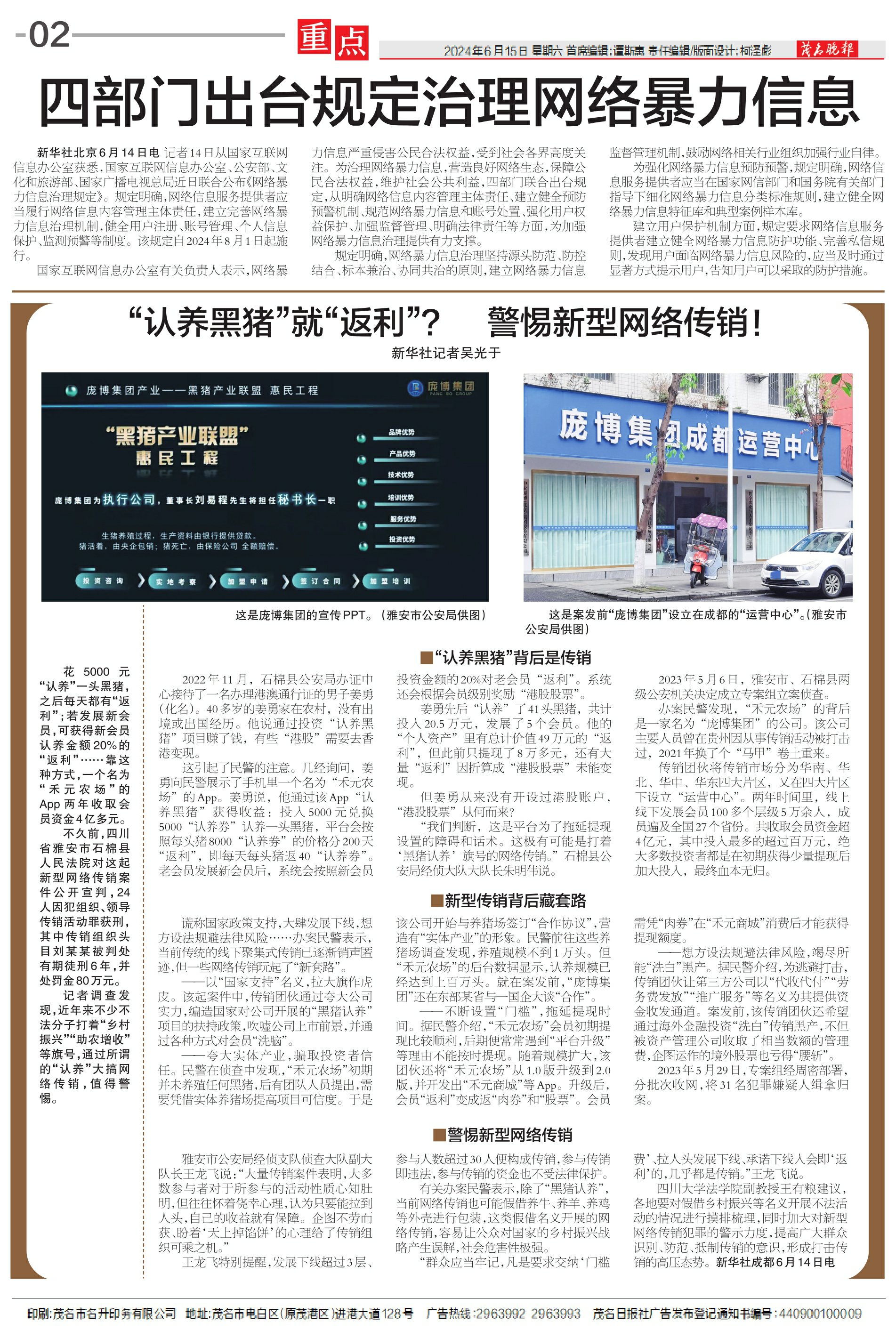“认养黑猪”就“返利”? 警惕新型网络传销!