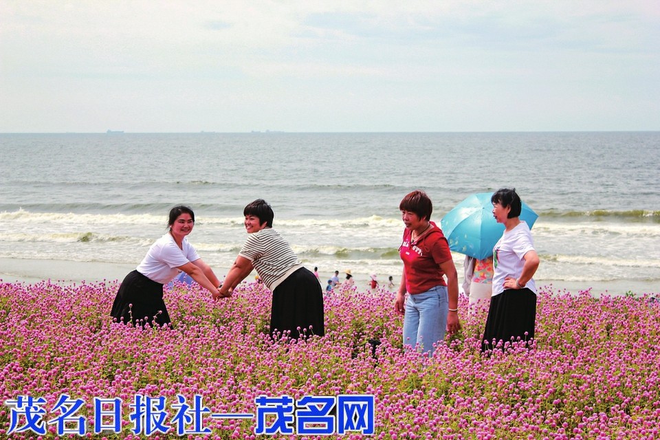 茂名晚报讯 记者李光耀 昨天上午,电白区塘霞俚街外的海边,风和日丽。海边的一片“千日红”花处,游人众多,花间拍照。花海同框,是近日这里惹人来打卡的亮点。