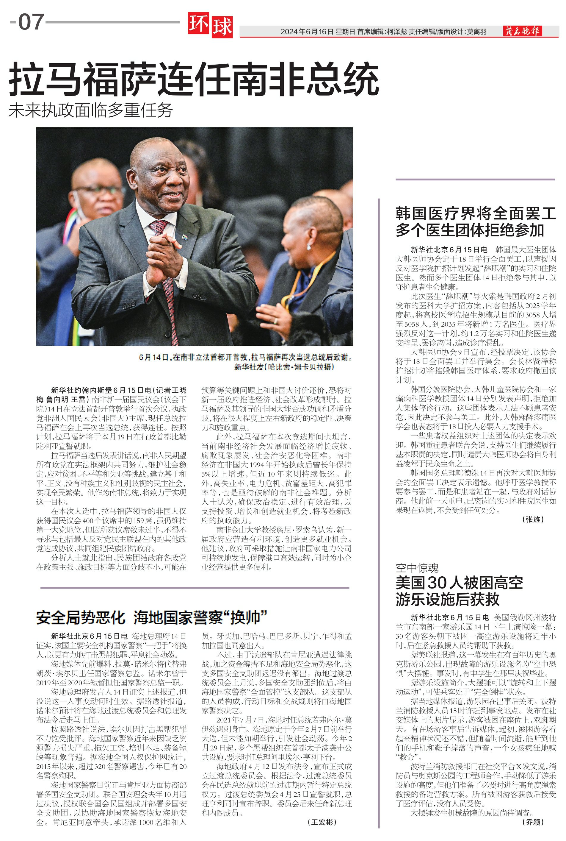 新华社北京6月15日电 美国俄勒冈州波特兰市东南部一家游乐园14日下午上演惊险一幕:30名游客头朝下被困一高空游乐设施将近半小时,后在紧急救援人员的帮助下获救。