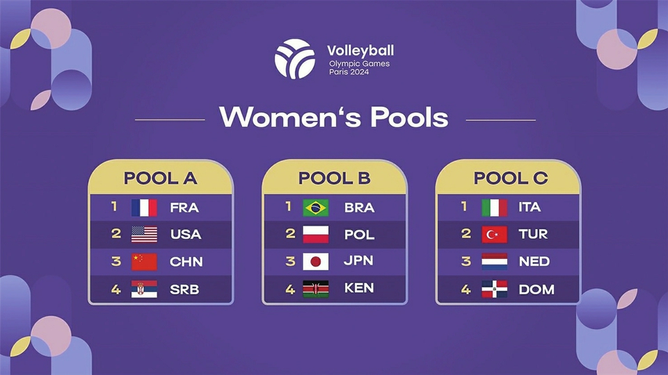 共有12支球队参加2024年巴黎奥运会女排比赛。与东京奥运会12支球队分为两个小组不同,巴黎奥运会的12支球队在小组赛阶段分为3个小组,每组4支球队。