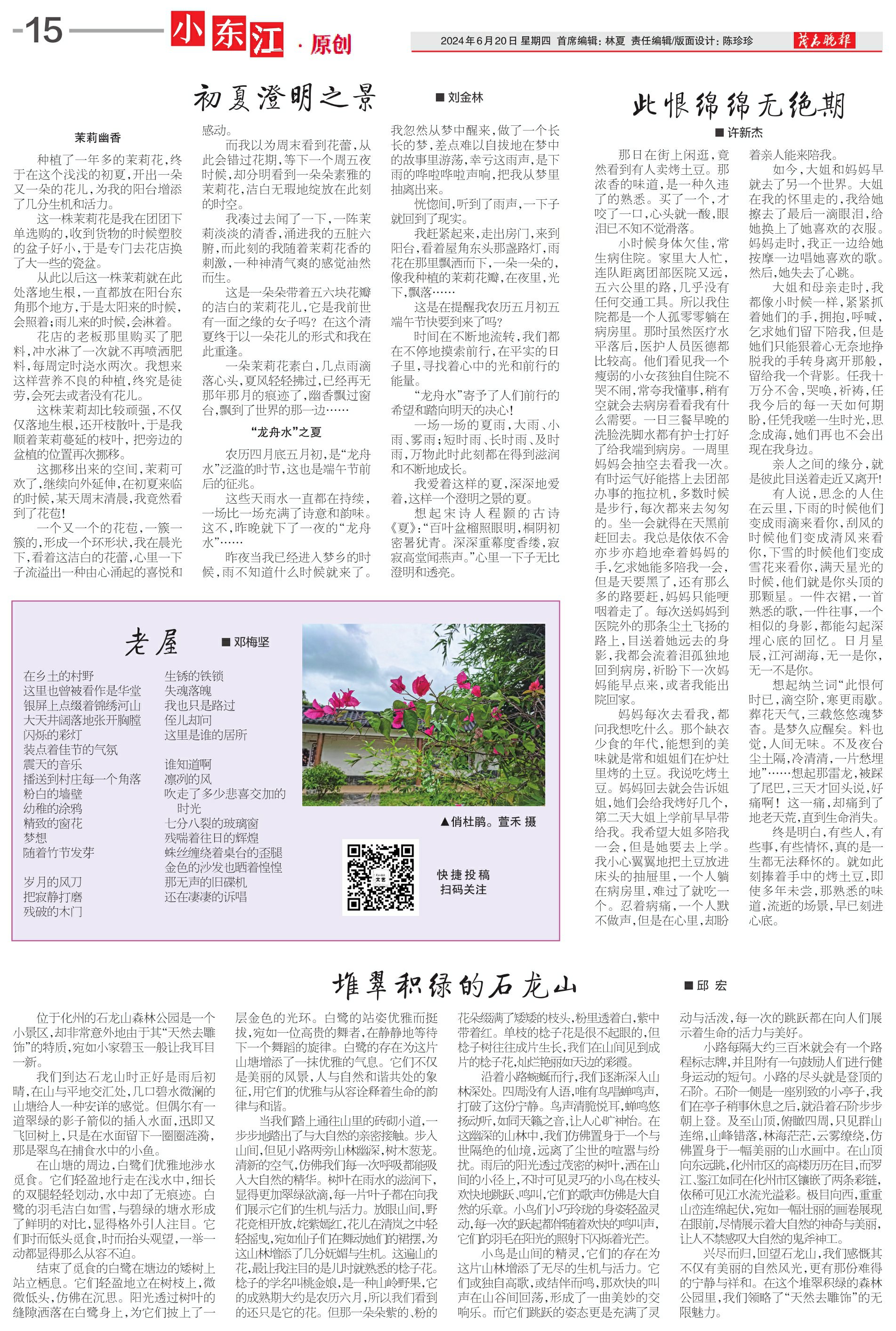 一场一场的夏雨,大雨、小雨、雾雨;短时雨、长时雨、及时雨,万物此时此刻都在得到滋润和不断地成长。