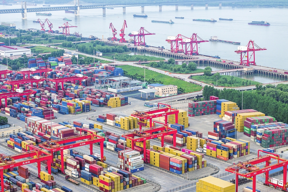 5月26日拍摄的安徽芜湖港朱家桥港区国际集装箱码头(无人机照片)。新华社发(肖本祥摄)