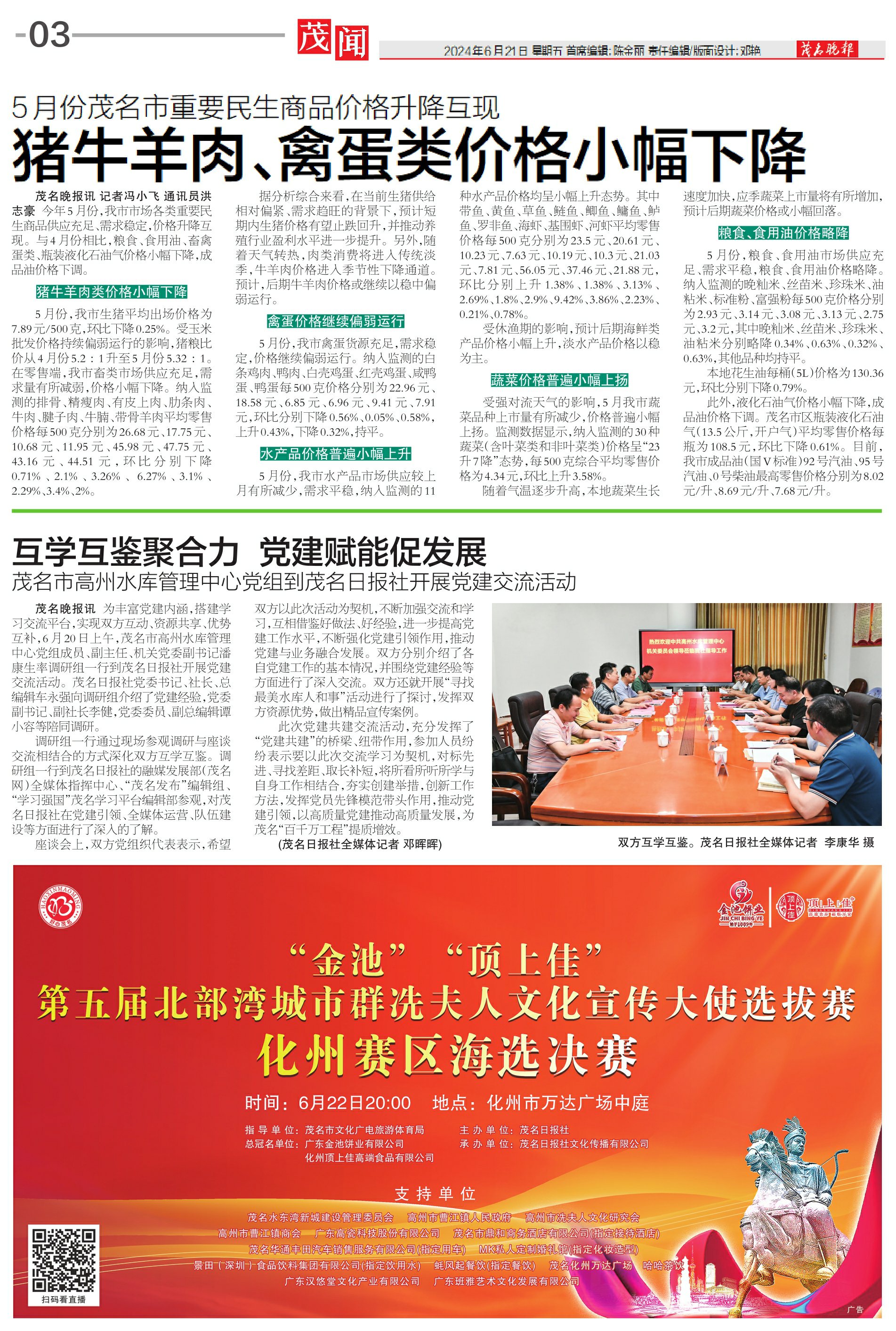 猪牛羊肉、禽蛋类价格小幅下降