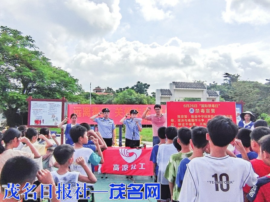 茂名晚报讯 记者 柯泽彪 通讯员 汪江霞 为深入推进禁毒工作,全力营造禁毒高压宣传新氛围,日前,电白区旦场镇组织开展“远离毒品·关爱未来”禁毒宣誓,该镇禁毒办高凉社工协同派出所民警、双百社工,带领旦场小学全体师生共同宣誓禁毒,为即将到来的国际禁毒日营造良好的宣传氛围。