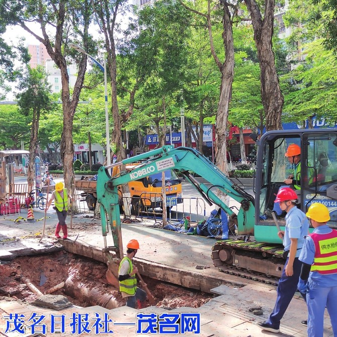 施工人员正在抓紧抢修。茂名晚报记者 李光耀 摄