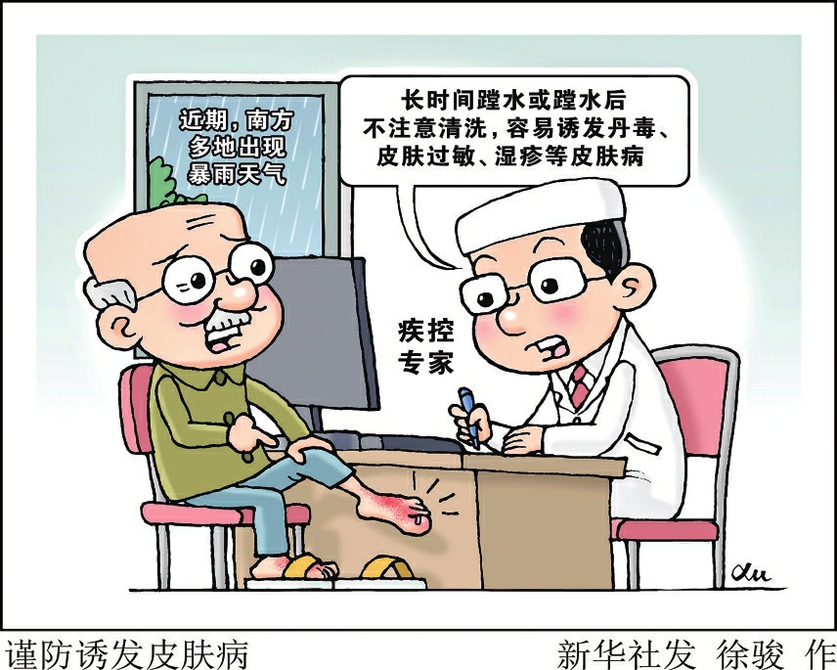 新华社长沙6月25日电(记者帅才)近期,南方多地出现暴雨天气。疾控专家提醒,长时间蹚水或蹚水后不注意清洗,容易诱发丹毒、皮肤过敏、湿疹等皮肤病。