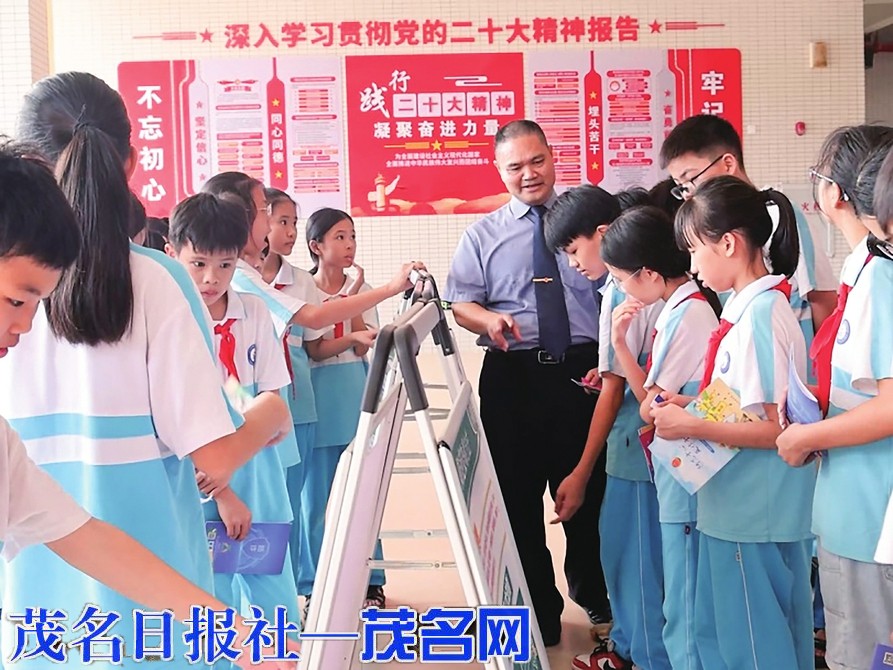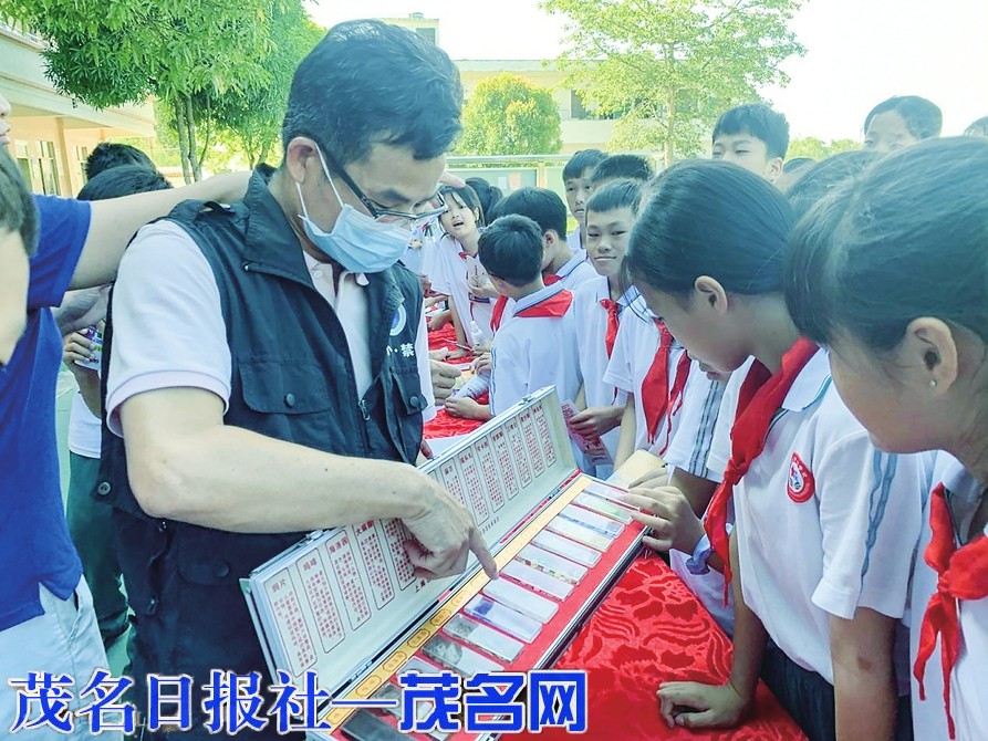 小良镇禁毒志愿者指导学生识别毒品类型。通讯员梁少红摄