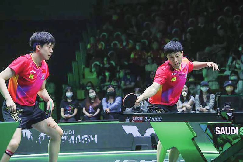 5月10日,中国组合马龙/王楚钦夺得WTT沙特大满贯赛男双冠军。新华社记者王海洲摄