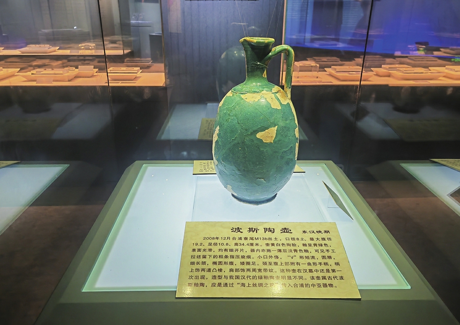 “它曾叫‘青绿釉陶壶’,后因其‘波斯血统’,得名‘波斯陶壶’。”副馆长林娟说,这是迄今为止中国出土年代最早、也是目前唯一一件东汉时期的波斯陶壶。这座波斯陶壶的发现,证明早在2000多年前,中国就与波斯帝国有着紧密的贸易往来,海上丝绸之路就是双方交流的纽带。