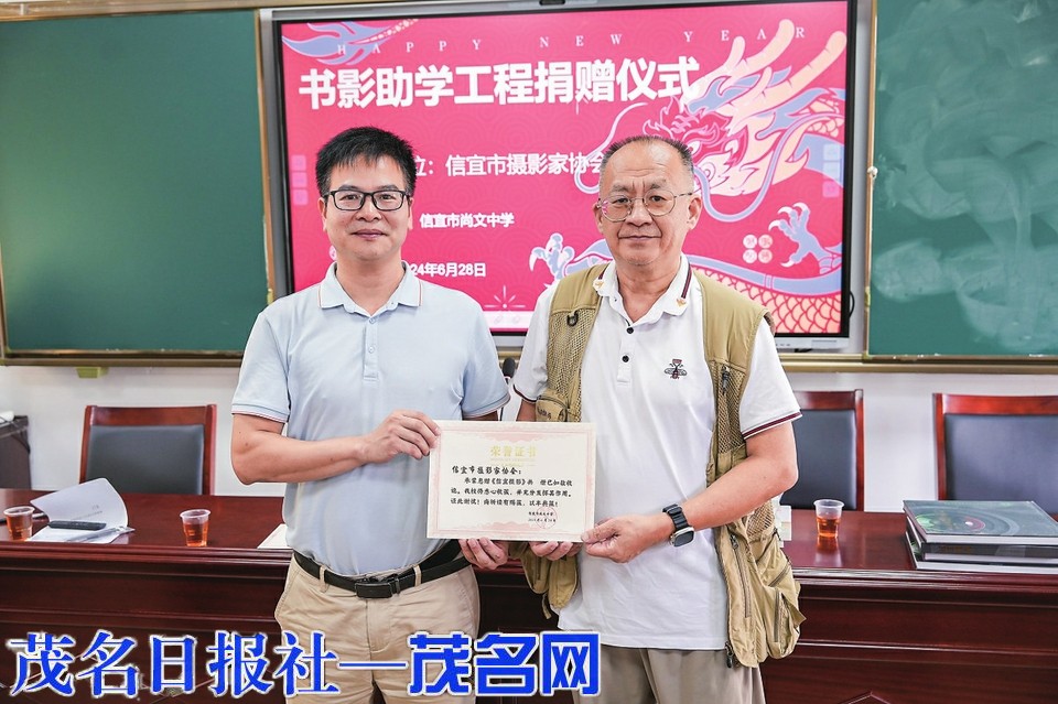 6月28日下午,“书影助学工程”捐赠仪式在尚文中学举行,信宜市摄影家协会、东镇街道关工委、信宜市农商银行、邮储银行信宜市支行等相关单位和部门负责人,以及社会爱心人士等出席并见证了此次捐赠活动。