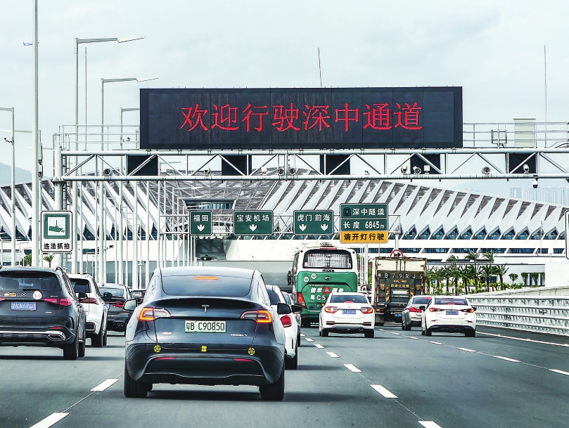 这是开通首日的深中通道车流(6月30日摄)。