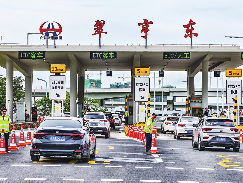 6月30日,车辆陆续从深中通道中山翠亨东收费站驶上深中通道。