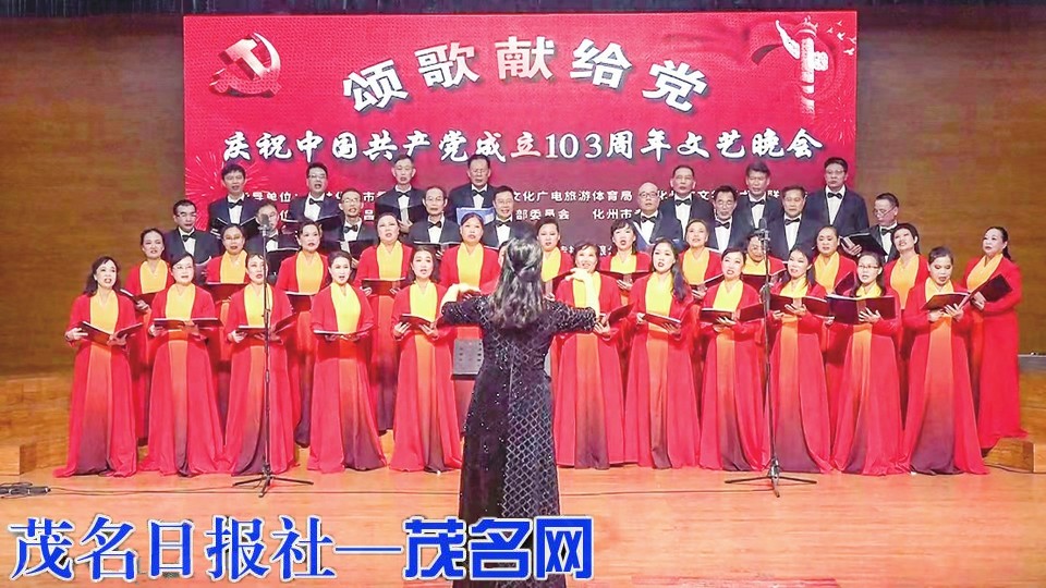 茂名晚报讯 红旗飘扬颂党恩。6月28日晚,由化州市委老干部局、市文广旅体局、市文联指导,中共广东昌华海利科技有限公司支部委员会、化州市老年大学合唱团主办的“颂歌献给党”庆祝中国共产党成立103周年文艺晚会在化州市海利音乐厅举行,老同志们尽显才艺,用激情澎湃的歌声和精彩的表演表达了对党的无限热爱、对伟大祖国的热情讴歌与美好祝福。