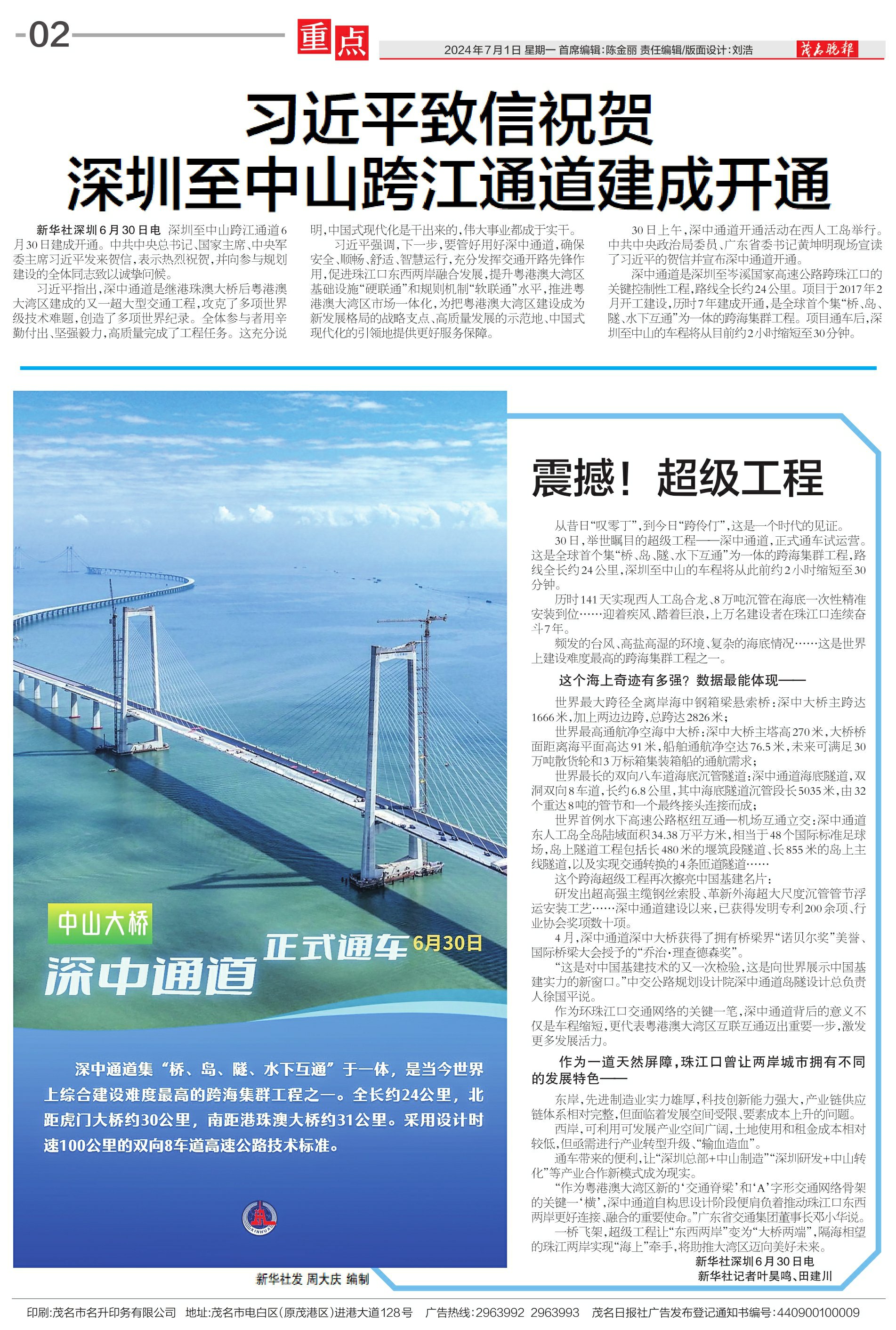 习近平致信祝贺深圳至中山跨江通道建成开通