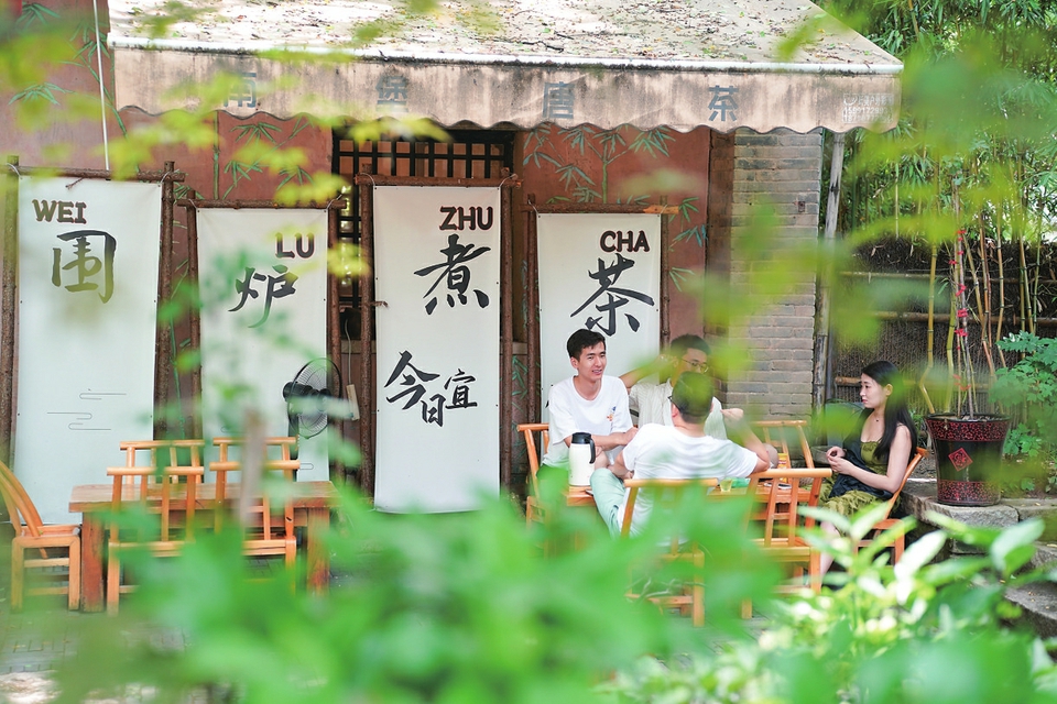 7月11日,游客在长安唐村景区一间茶馆内休闲。新华社记者邵瑞摄