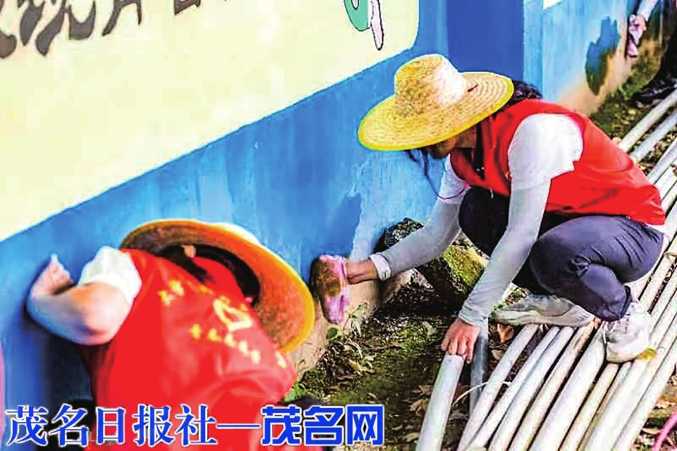 ②③青年大学生乡村振兴志愿服务队在进行墙体彩绘,美化环境。