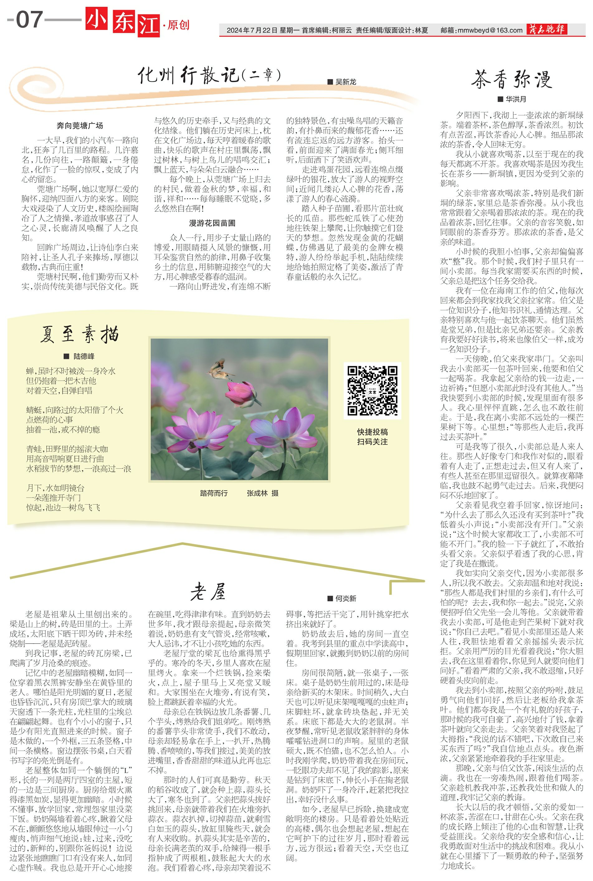 莞塘村民啊,他们勤劳而又朴实,崇尚传统美德与民俗文化。既与悠久的历史牵手,又与经典的文化结缘。他们躺在历史河床上,枕在文化广场边,每天哼着暖春的歌曲,快乐的歌声在村庄里飘荡,飘过树林,与树上鸟儿的唱鸣交汇;飘上蓝天,与朵朵白云融合……