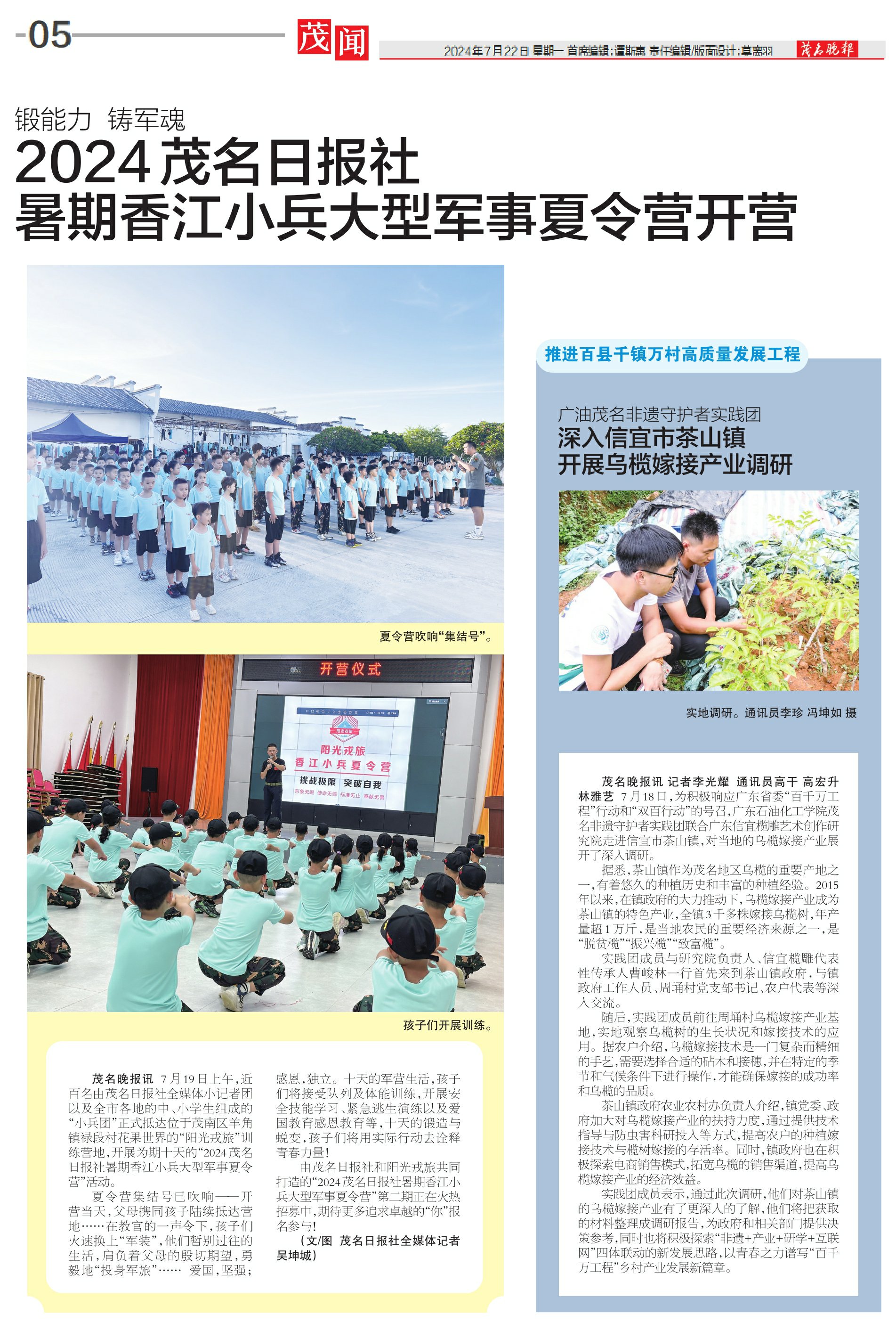 2024茂名日报社暑期香江小兵大型军事夏令营开营